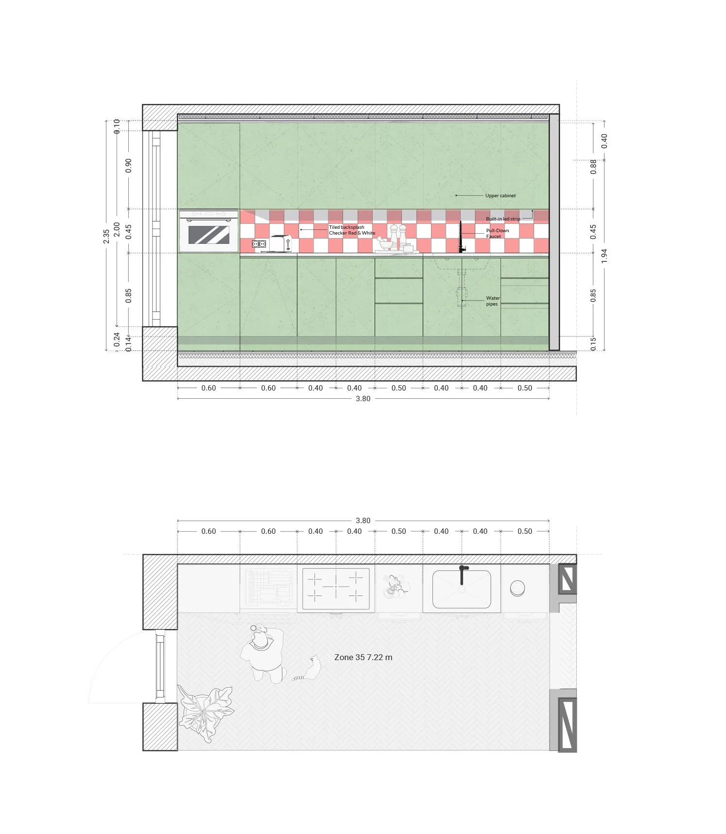 This apartment renovation on Zeedijk Street in the heart of Amsterdam draws inspiration from the vibrant tulip fields of the Dutch countryside — expansive, rhythmic bands of color that sweep across the landscape in poetic repetition.