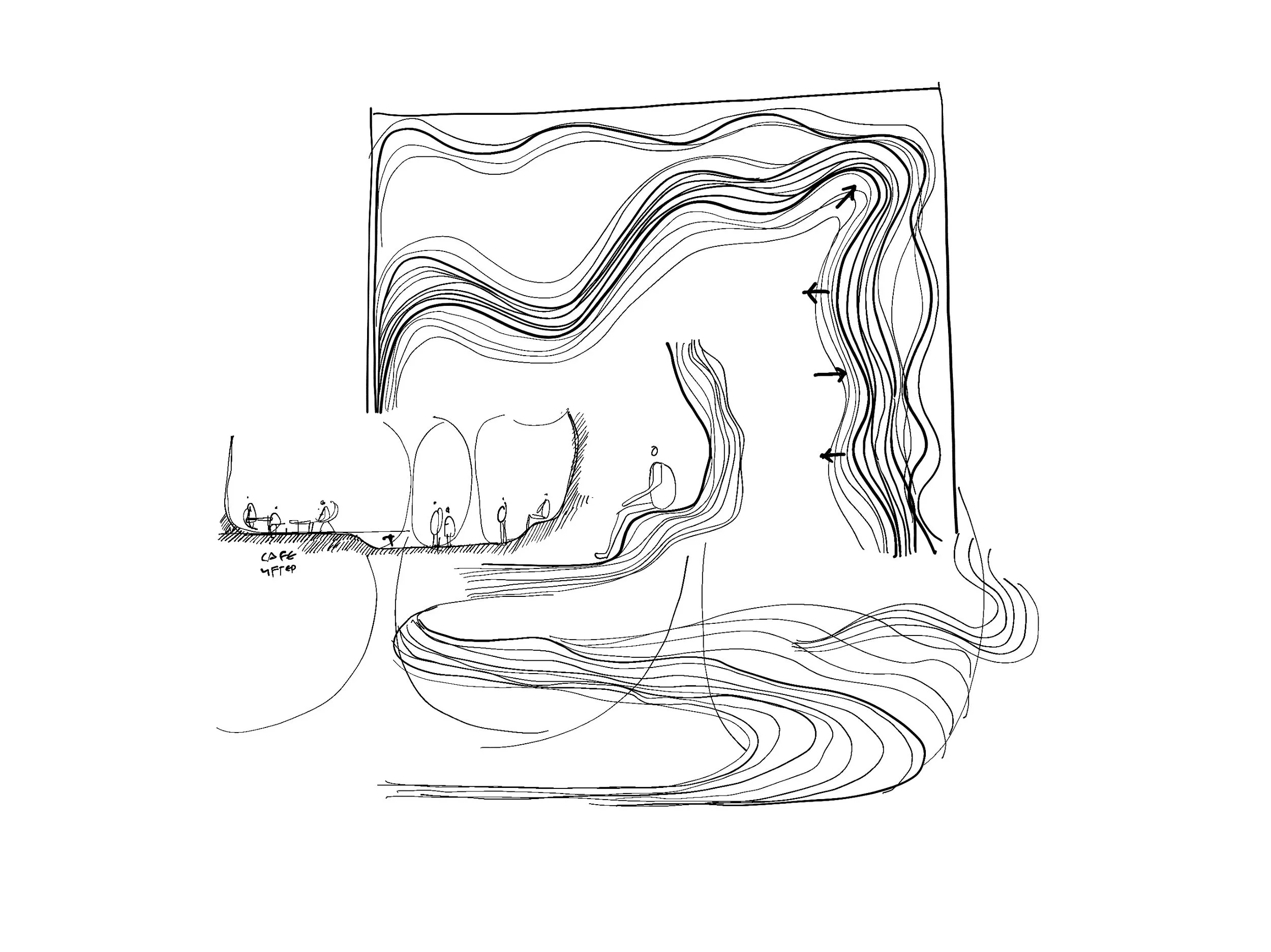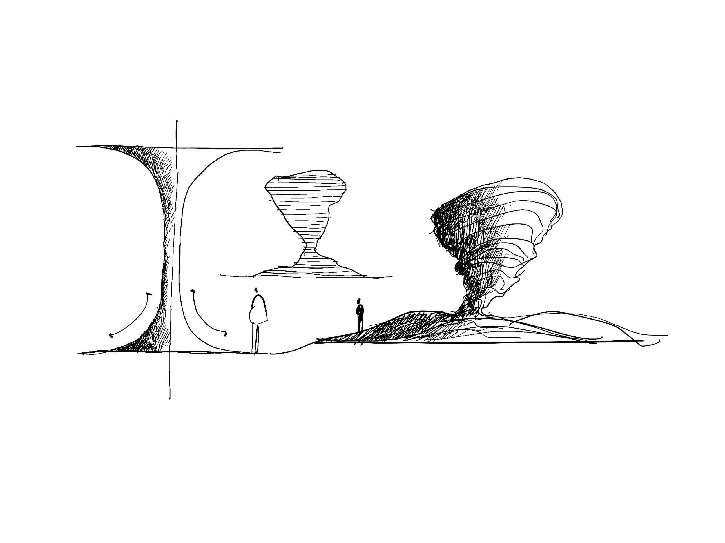 Flow is the primary characteristic of stone erosion, representing a remarkable stone formation that we aim to replicate in the space, providing users and visitors with a sense of fluidity and continuity.